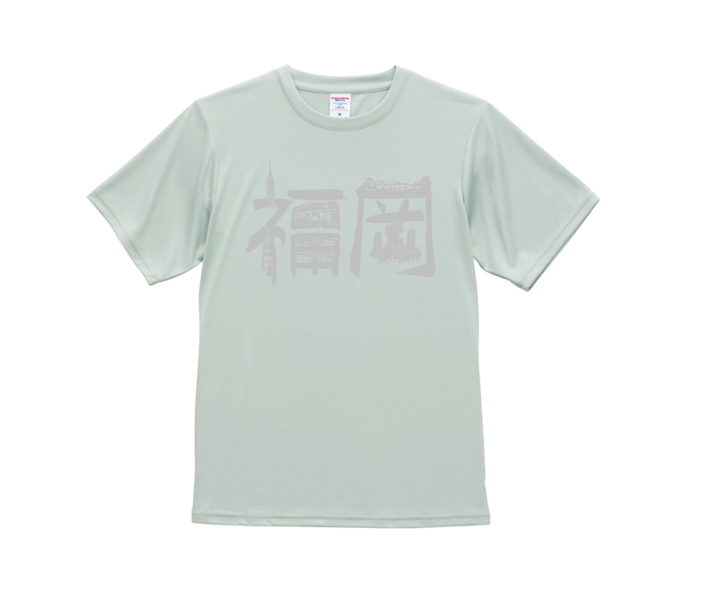 From far away, only the brushed kanji characters, "Fukuoka," can be seen, but upon closer inspection, you can see little designs special to Fukuoka hidden in the characters. A yatai food stall, yakitori skewers, Fukuoka Tower, the Yamakasa Festival, and more make up this unique shirt. The perfect souvenir to remember your Kyushu trip!